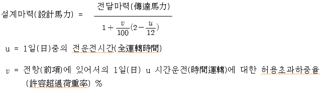 작을 때는 전2항(前2項)의 식(式)에 의해 설계마력(設計馬力)을 구할 것