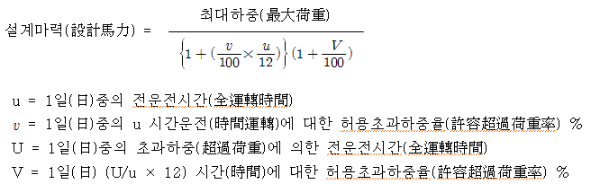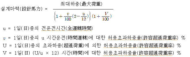 상용하중(常用荷重)으로 1일(日) 12시간(時間) 운전(運轉)을 기준으로 한