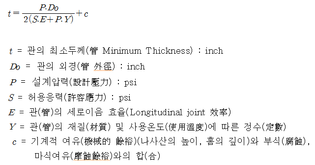 * 강관의 두께 계산식 (The thickness calculation formula for steel pipes)