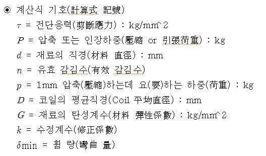 * 코일스프링 전단응력(Coil Spring 剪斷應力) 및 휨(彎曲)의 계산식(計算式)