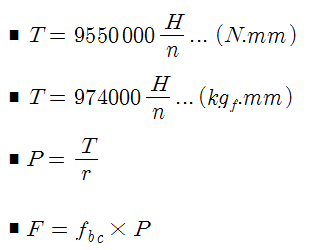 스프라켓(Sprocket)에 작용하는 힘은 다음 계산식으로 구할