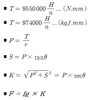 K : 치차(Gear)에 걸리는 합성력 (N),(kgf)