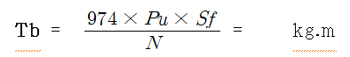 * Braking torque calculation of bridge drive (Indoor EOC) * Bridge drive motor power : Pu = kw x set * Bridge drive motor rpm : N = rpm * Requird brake safety factor : Sf = (% of motor torque) * Used braking torque : Tu = kg.m/set x set * Required braking torque ( Calculated value ) * Required braking torque Tb = kg.m < Tu = kg.m/set x set